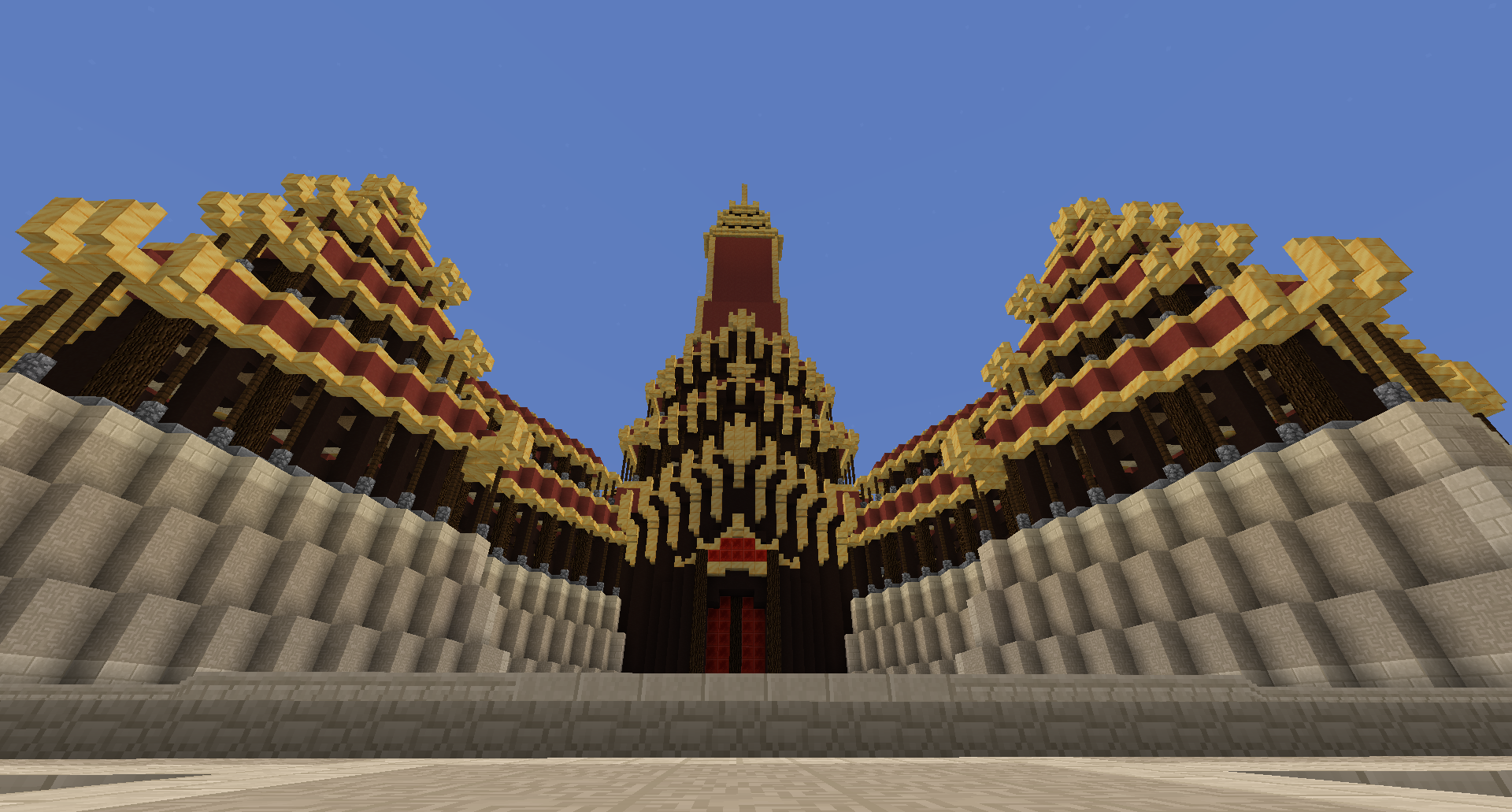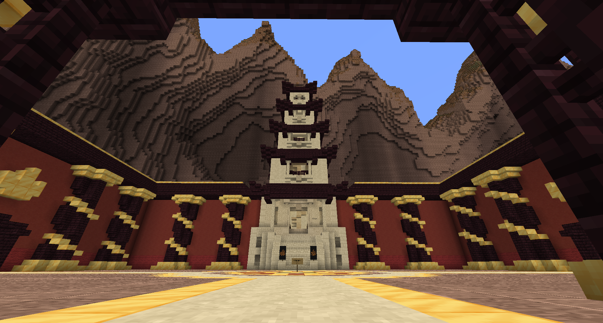 The Royal Palace stands at the center of the crater, where Fire Lord Izumi currently resides.